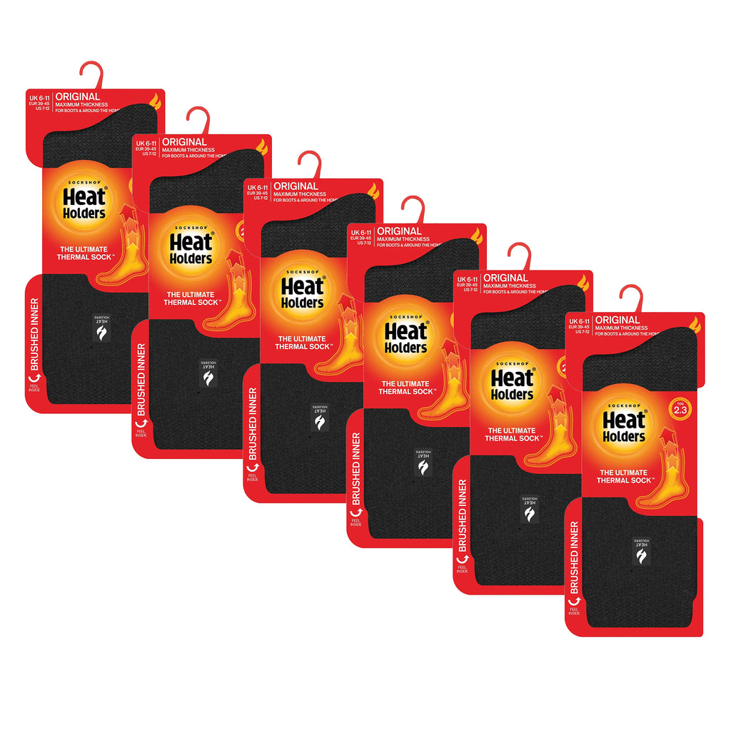 Nos chaussettes thermiques originales pour hommes en noir garderont vos pieds au chaud même les jours les plus froids. L'intérieur de chacune de ces chaussettes épaisses a été intensément brossé pour être ultra doux et emprisonner l'air chaud près de la peau pour garder vos pieds au chaud plus longtemps.